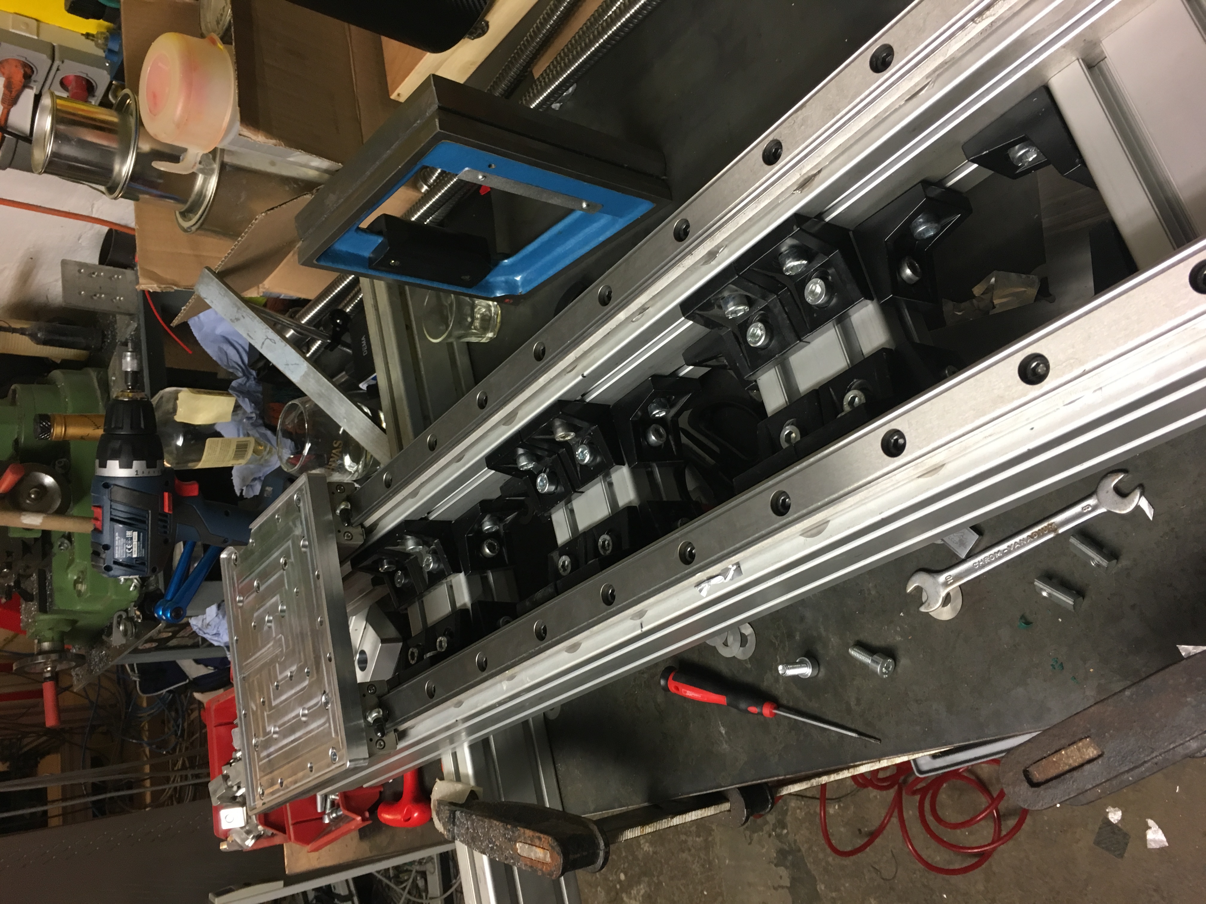 То что на балке это 40х80х5мм а на стол 80х80х3мм облегчённый. Хотел вставить толстый но было поздно. Это мой первый станок но последний с алюминиевого профиля. Следущий будет из полимер бетона.
