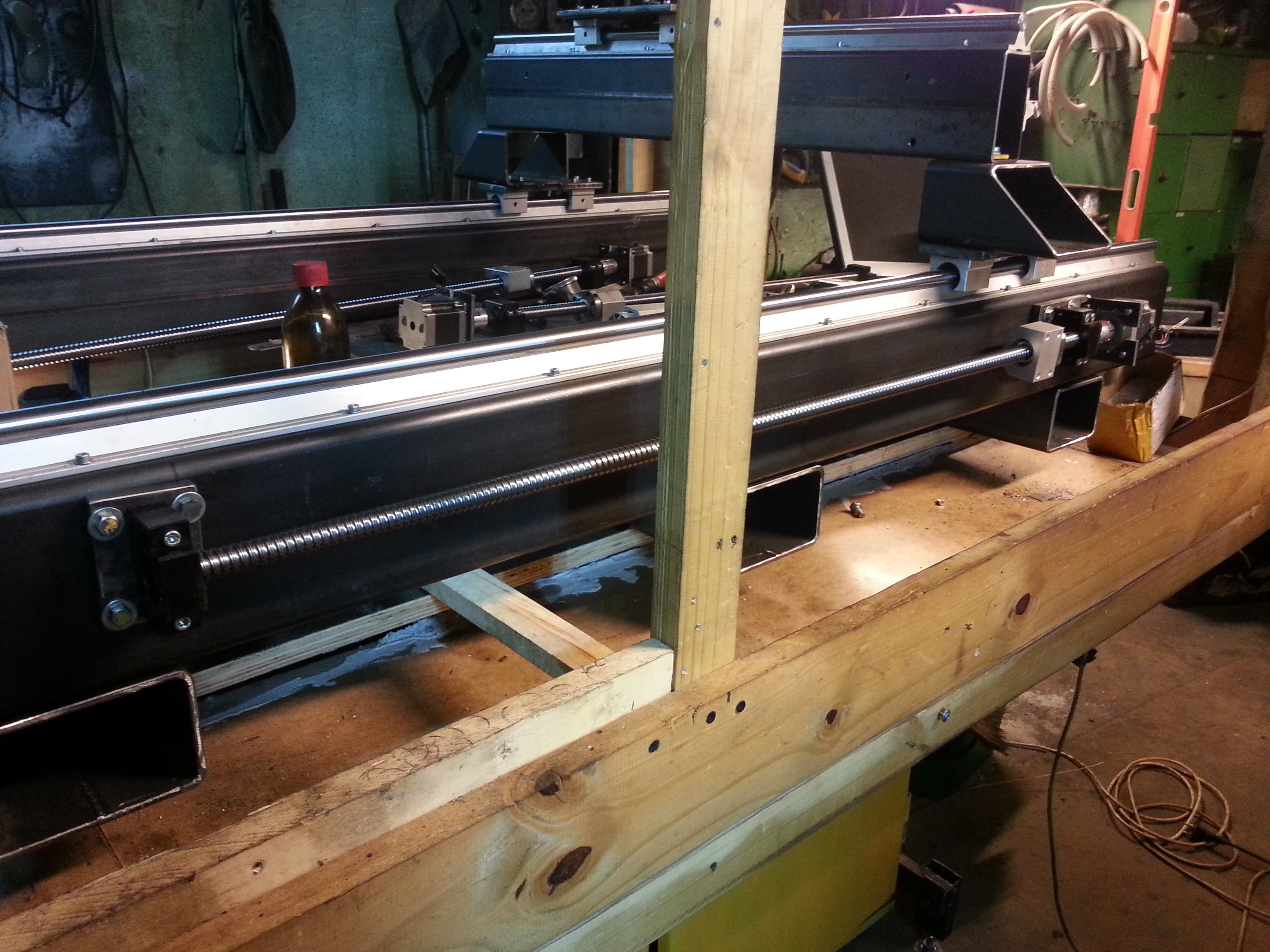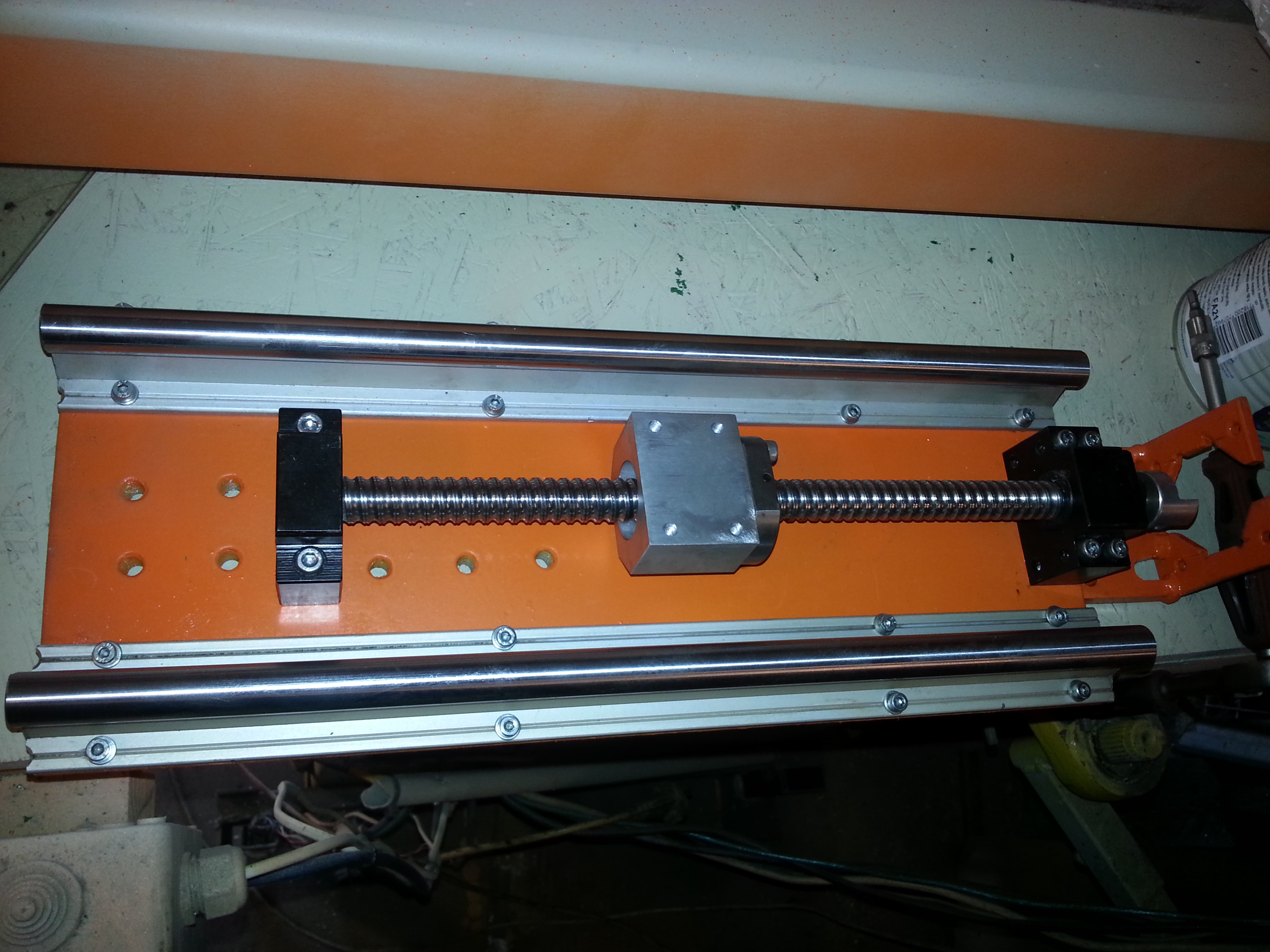 Гигантское расстояние между креплением гайки швп и креплением шпинделя, направляющие отпилить-не велика потеря. А так, большой рычаг получился.