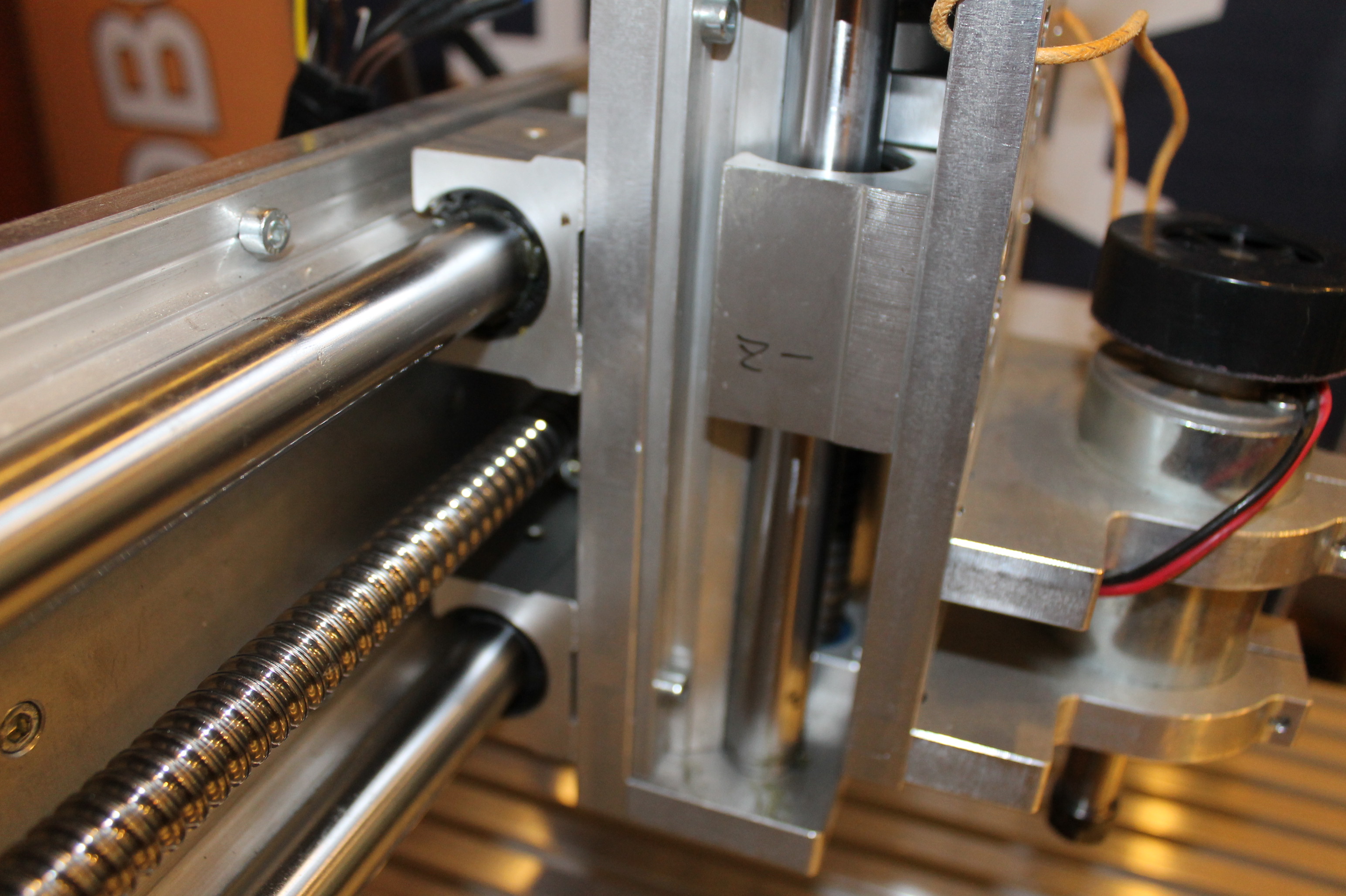 Вот так оно выглядит в станке, прикрученное к нижним отверстиям для крепления дешевого шпинделя, которые не используются для больших шпинделей. 3 см дают достаточную свободу для подгонки под разные длины фрез.
