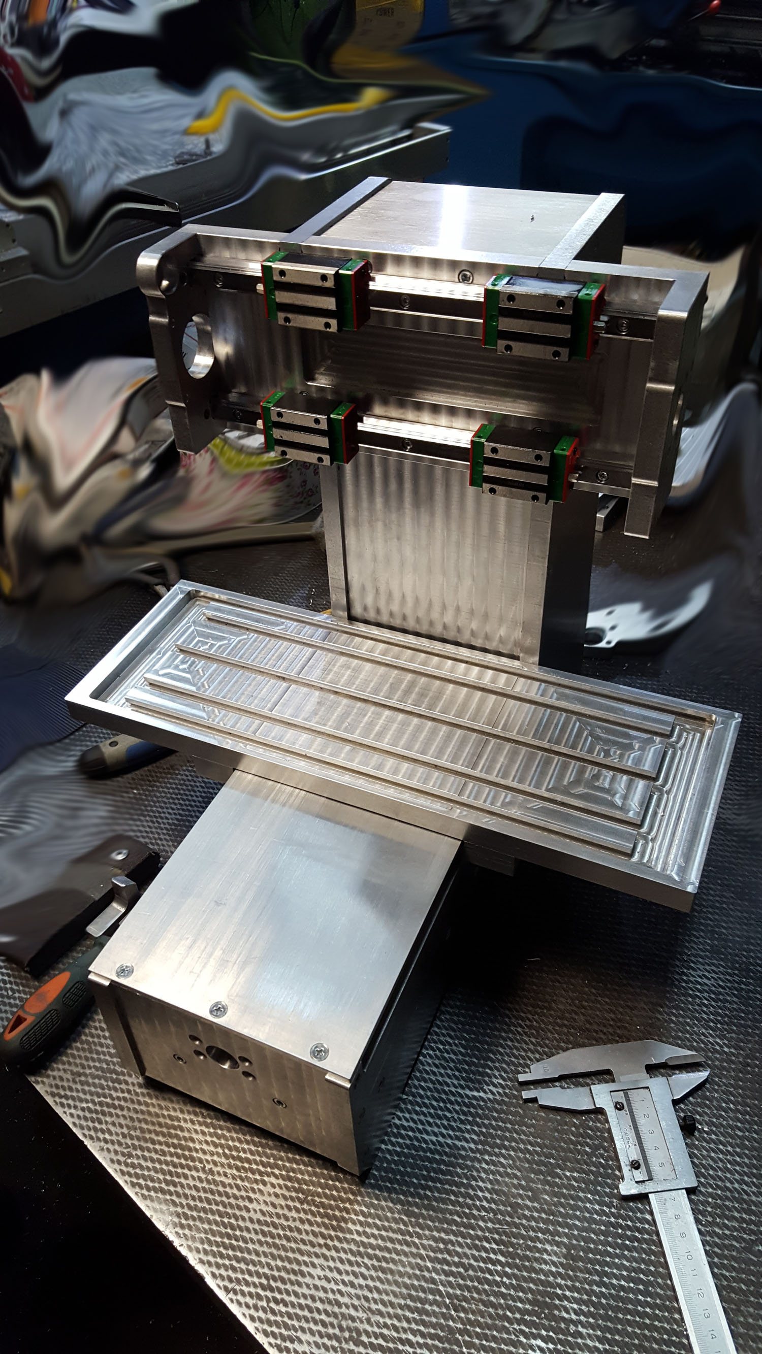 Сейчас проект "Мини" снова в работе, не хочется его забрасывать, уж очень добротный и интересный станок. Сейчас Мини проходит стадию сборки, и на него уже есть два предзаказа, теперь точно не "соскочит" от публикации на сайте. :hehehe: Это доработанный, еще более усиленный вариант, на рельсах Hiwin.