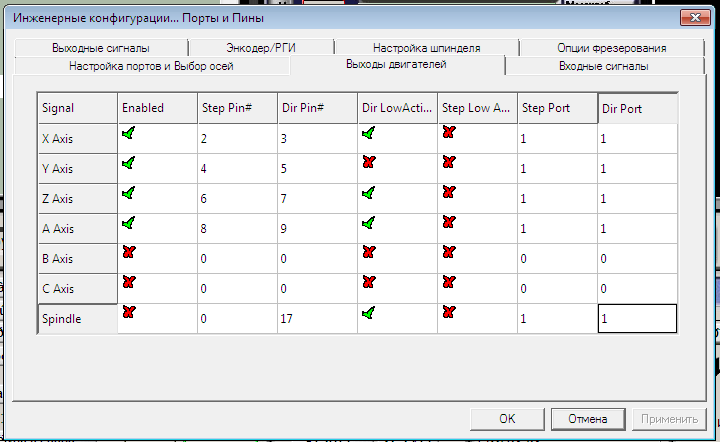 Попробуй как здесь, только не активируй ось А и шпиндель - там пины отличаются от твоей схемы. К тому же думаю пока четвертая ось и шпиндель ненужны, главное контролер запустить.