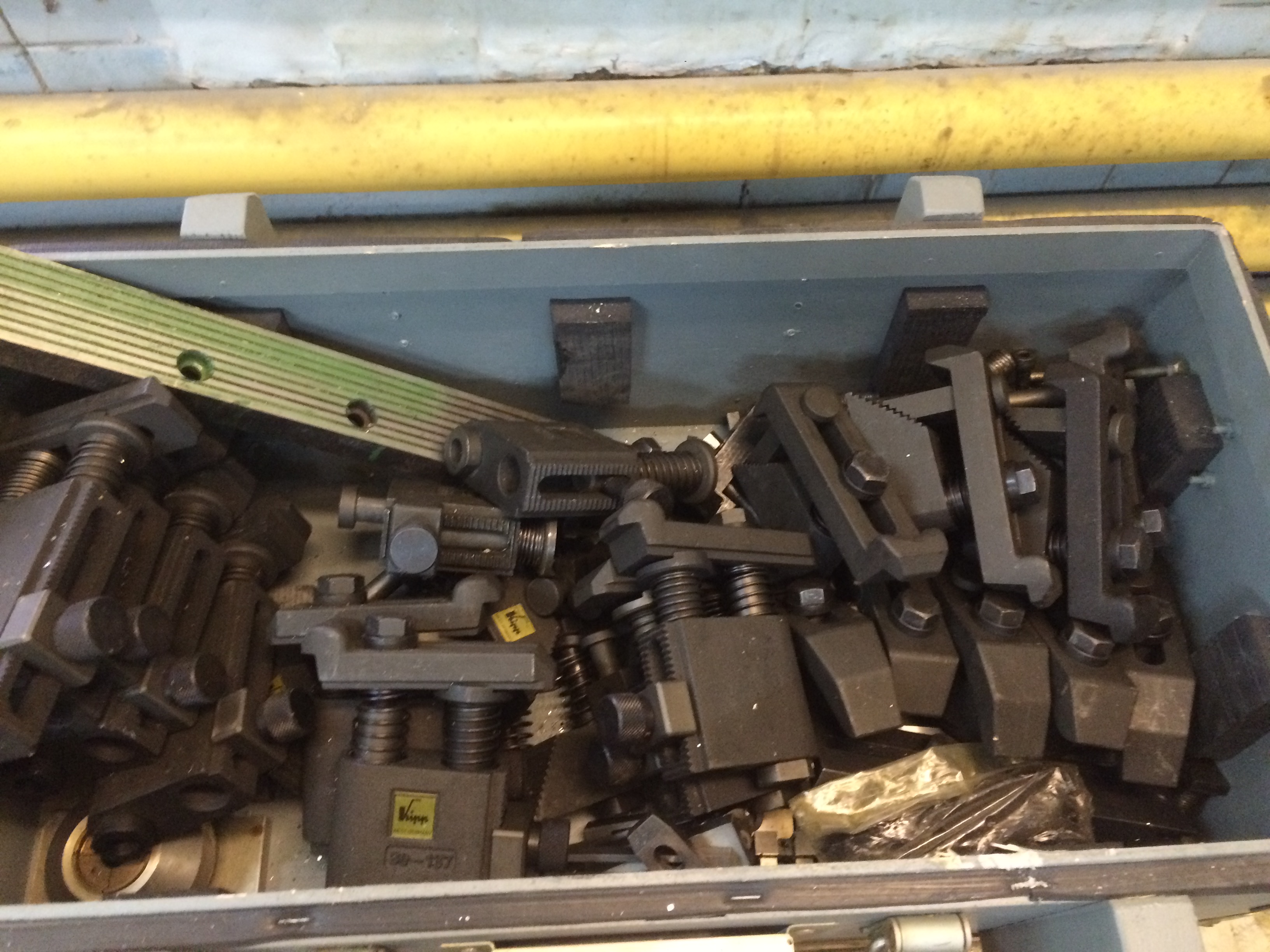 Различные цанги ER25,ER11 и др. не буду врать о количестве не помню,фрезы(в основном ТС)~70штук в основном ф4-12, есть несколько более больших и меньших, собственно тумба(знающие люди оценят)...