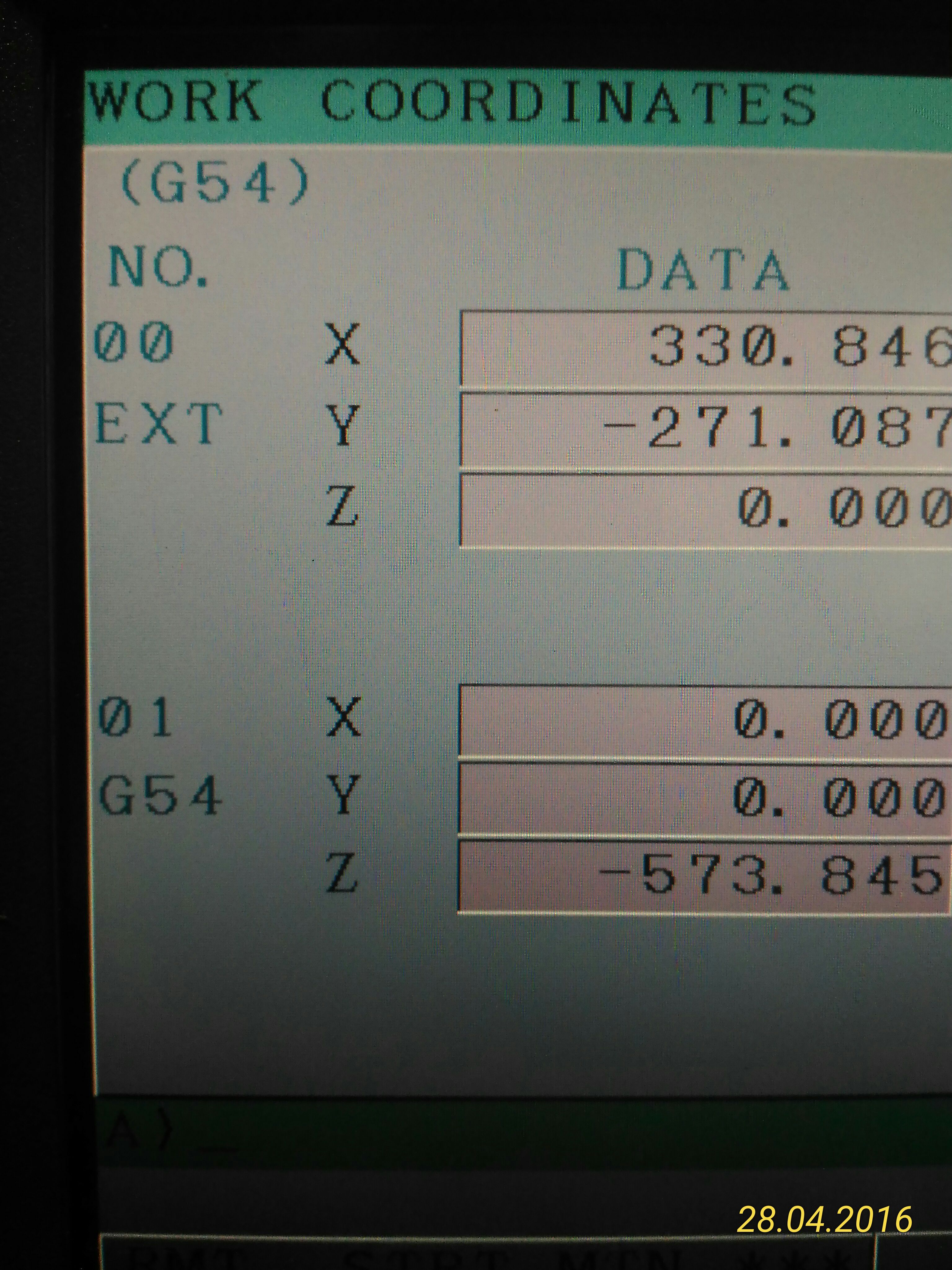А ты не пробовал эти координаты занести в G54?Работает по G54, реальные координаты в таблице сверху