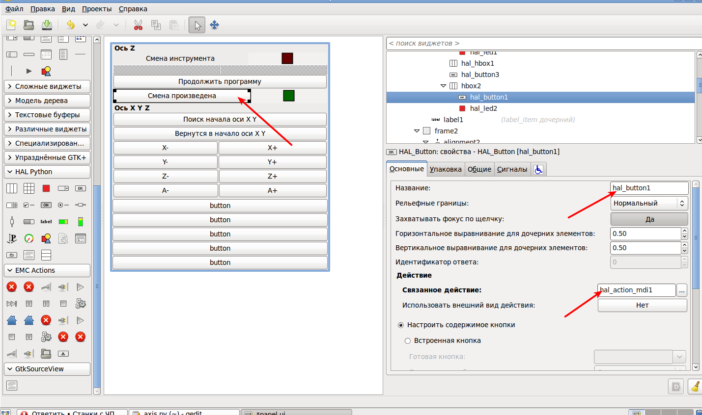 Виталий писал(а):-как связать hal и кнопку glade поиск начала оси x y