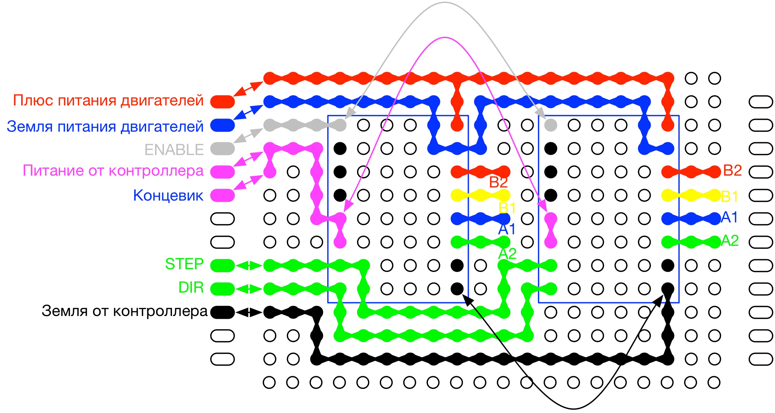 Собрал сегодня схему, паралельно подключил два драйвера DRV8825.