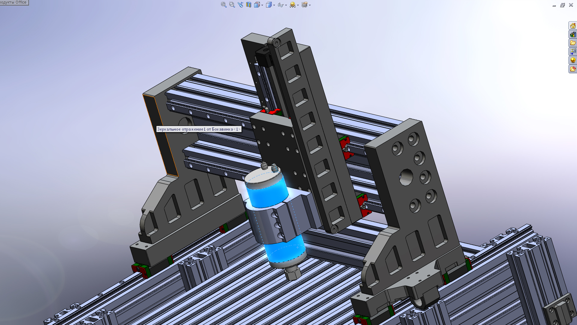 А с чего вы решили что профиль порезан точно одинаковыми кусками? У вас есть микрометр способный мерить такой размер? Или вы торцевали все профили пачкой за один установ? В том и косяк ваших конструкций что заложены трудновыполнимые доступными средствами решения,непредусмотрены возможности компенсировать неизбежные погрешности изготовления деталей. Говоря по простому отфрезеровали детали собрали станок все перекосоебило тут немного там немного а исправить или нельзя или гемор адский. С чего решили что с одним винтом перекоса небудет? При конкретно такой конструкции перекос портала будет самым мягким местом в этом станке. Если и делать один винт то снизу должен быть не узкий брусочек а широкая нормальная плита которая хорошо свяжет боковины портала от взаимосмещения. Еще одно веселое место это опора швп прикрученая к профилю на портале со стенкой 3мм в лучшем случае и даже если вы ие туда както прикрутите жестко сидеть она там небудет. Что мешает поставить фланцевую опору на боковину а шд закрепить наа кронштейне.