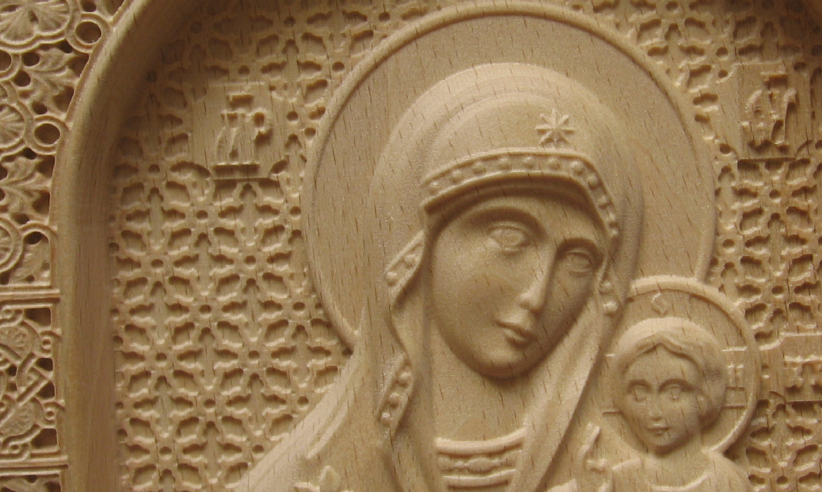 потом морилка (для икон нравится ореховая новобытхимовская) сплошным слоем, достаточно жирно. Потом тряпочка с 646 растворителем - снимаем морилку по-максимуму. Далее - аэрограф с той же морилкой достаточно тонким слоем. После высыхания - опять абразивная губка, очень легко. Ну и последний слой морилки - совсем легкий. Просто, чтобы не было потертостей.