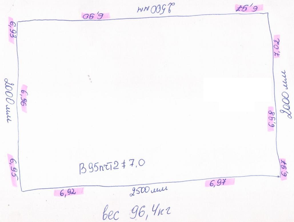 Исходные данные: Лист, габариты известны, толщина 7мм, размер 2000х2500мм, порезан из листа 7х2000х5000 В95ПЧТ2 (по словам поставщика).