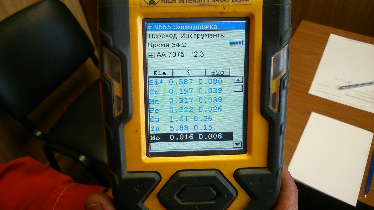 Для вашего и моего спокойствия сегодня металл с последней поставки просканировал хим. анализатором дабы убедиться что это в95 а не д16. Наличие преобладающей части цинка говорит о том чо это в95, да и на табло сразу загорелось 7075.