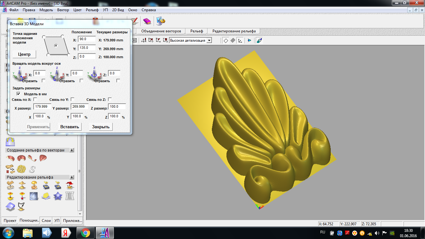 и высота 100 это конечно перебор, тем более когда такие прямые углы. Не думаю что фреза имеет вылет в 10 см.