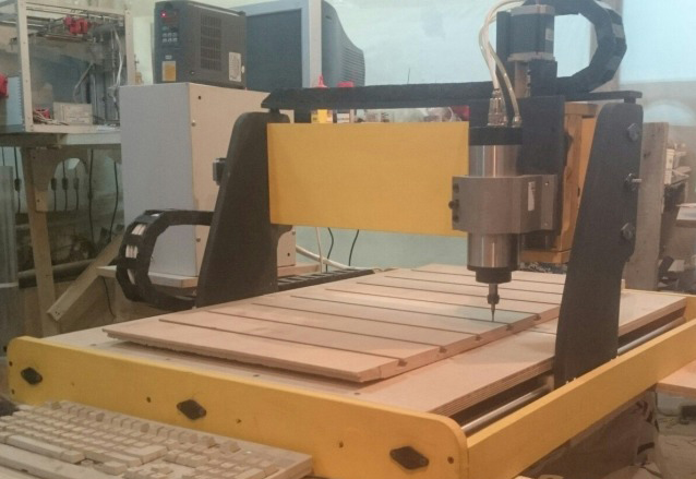 Неудачно для такой конструкции вышли цилиндрические направляющие - под порталом 20-е прогибаются вниз, а на портале гнутся "винтом" из-за слишком большой длины и тех, и тех. Капролновые линейные подшипники тоже особо не порадовали (хотя линейные подшипники стоят дешево, даже дешевле капролоновых). Огромной ошибкой была установка резьбовых шпилек... Ну и фанера 18мм не слишком стабильна (она была бесплатно и резали мы её на другом самодельном станке, который вышел очень даже удачным) Вот ссылка на него, если интересно: http://www.cnc-club.ru/forum/viewtopic. ... ead#unread