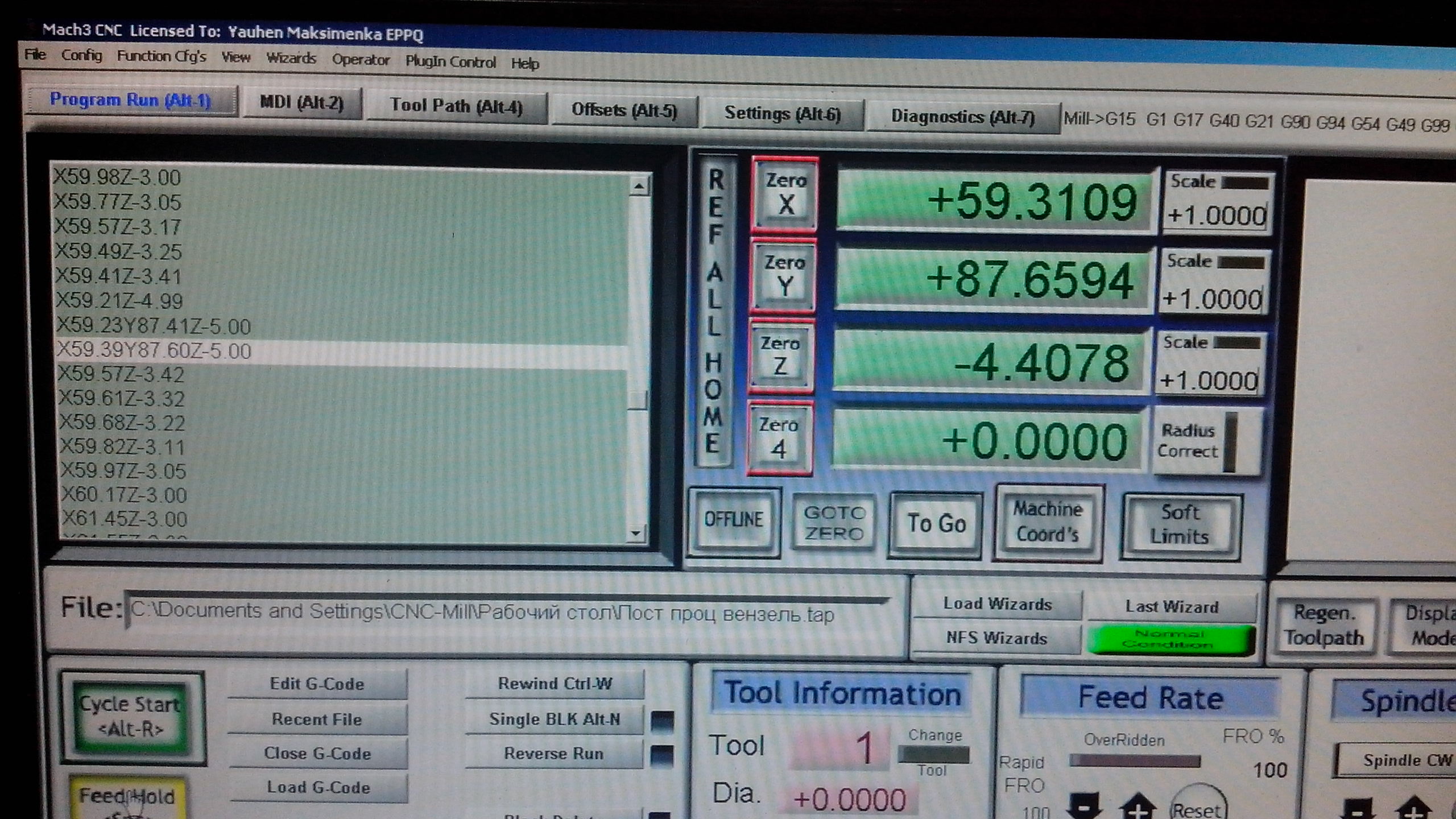 Возник вопрос. Решил отфрезеровать картину, прога получилась на 14 мб(самая большая какую загружал). Загрузил в мач и решил портал немного подвинуть в ручном режиме, короче не едет, дергается. Закрыл файл в маче - все отлично, передвигается без сбоев. Что это комп не вытягивает или контроллер?