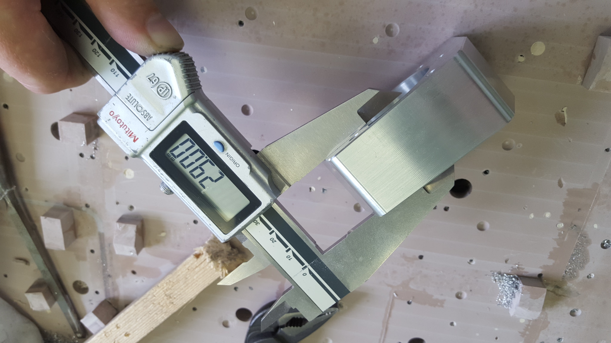 12.приклеиваем циакрином на деталь или на стол в 3х или 4х крайних точках кусочки любого листового материала имеющего точный размер 0.5-1мм я использую стеклотекстолит (можно подложить щупы или плитки кмд) задача обеспечить ровный зазор между столом и деталью.