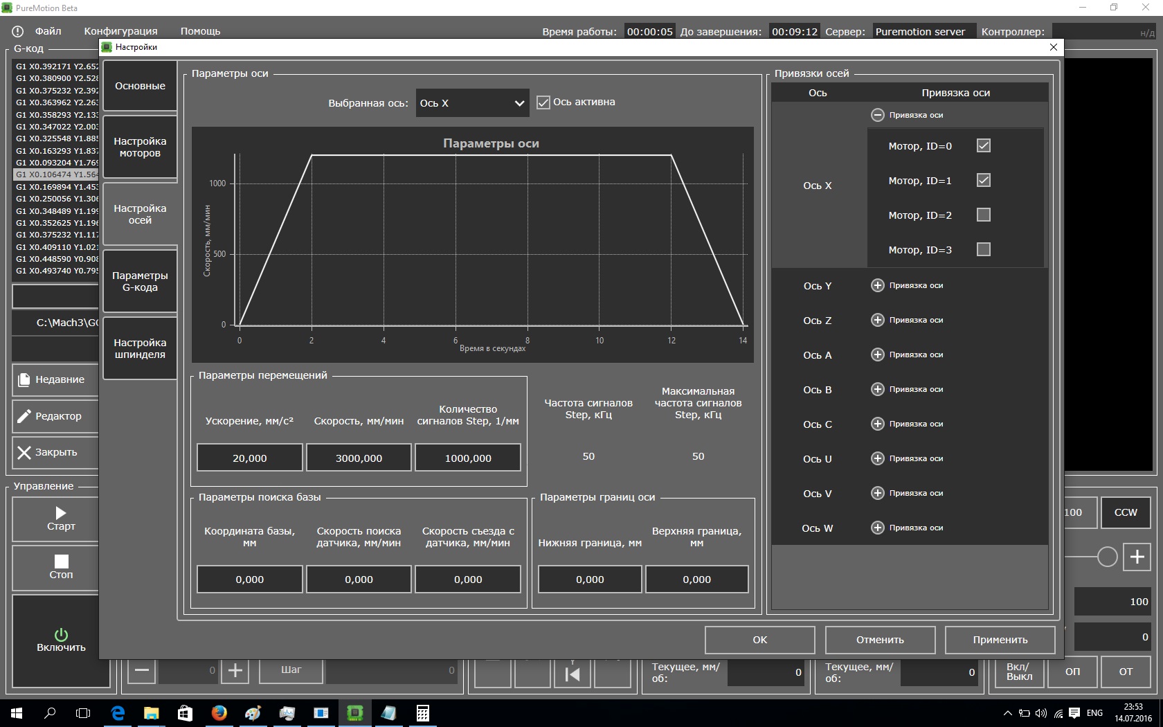 Заметил, что при ручном управлении, при нажатии стрелки - ось продолжает движение пока не нажмешь стоп. Т.ч. будьте осторожны :)