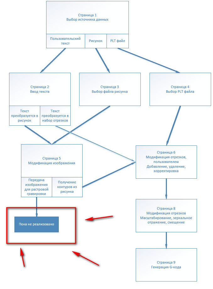 Интерфейс программы реализован, в виде набора страниц, которые отображаются в определенной последовательности, и только те страницы, которые необходимы, для получения результата.