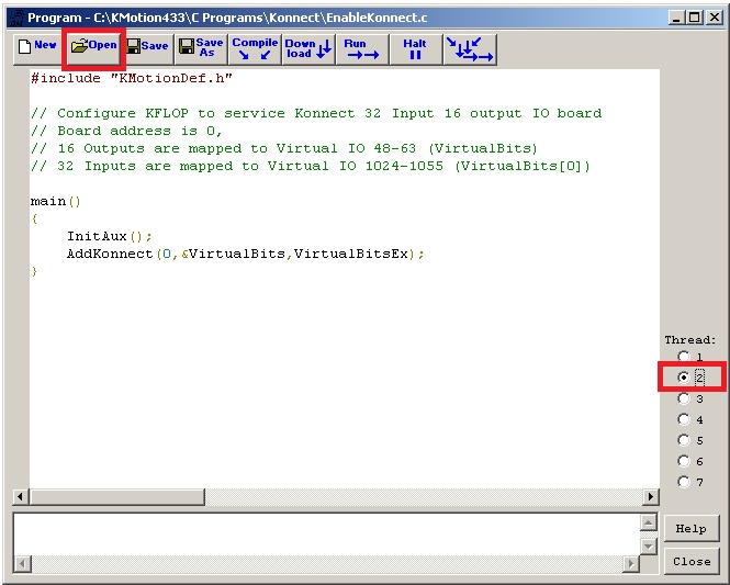 Либо файл EnableKonnect.с открываем во втором "thread" во вкладке "C program":