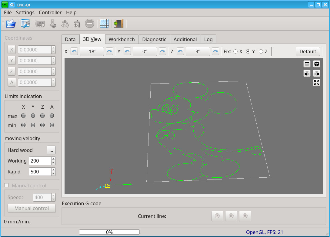 Вот, сделал переход на OpeGL ES 2.0. Пришлось переделывать на основу GLSL (GL Shader Language), зато работает напрямую на слабых видеоконтроллерах, в том числе и на Rasberry Pi. Огромное спасибо Сергею за ссылку на grblControl.
