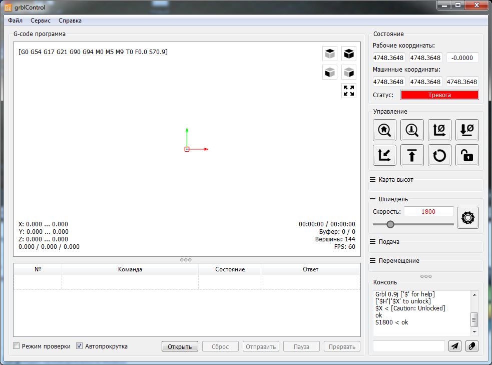 1. Включаю ардуино, драйверы ШД, step enable и концевики не подключены, запускаю программу GrblControl 0.8.4. Ничего не происходит. Результат первая картинка.