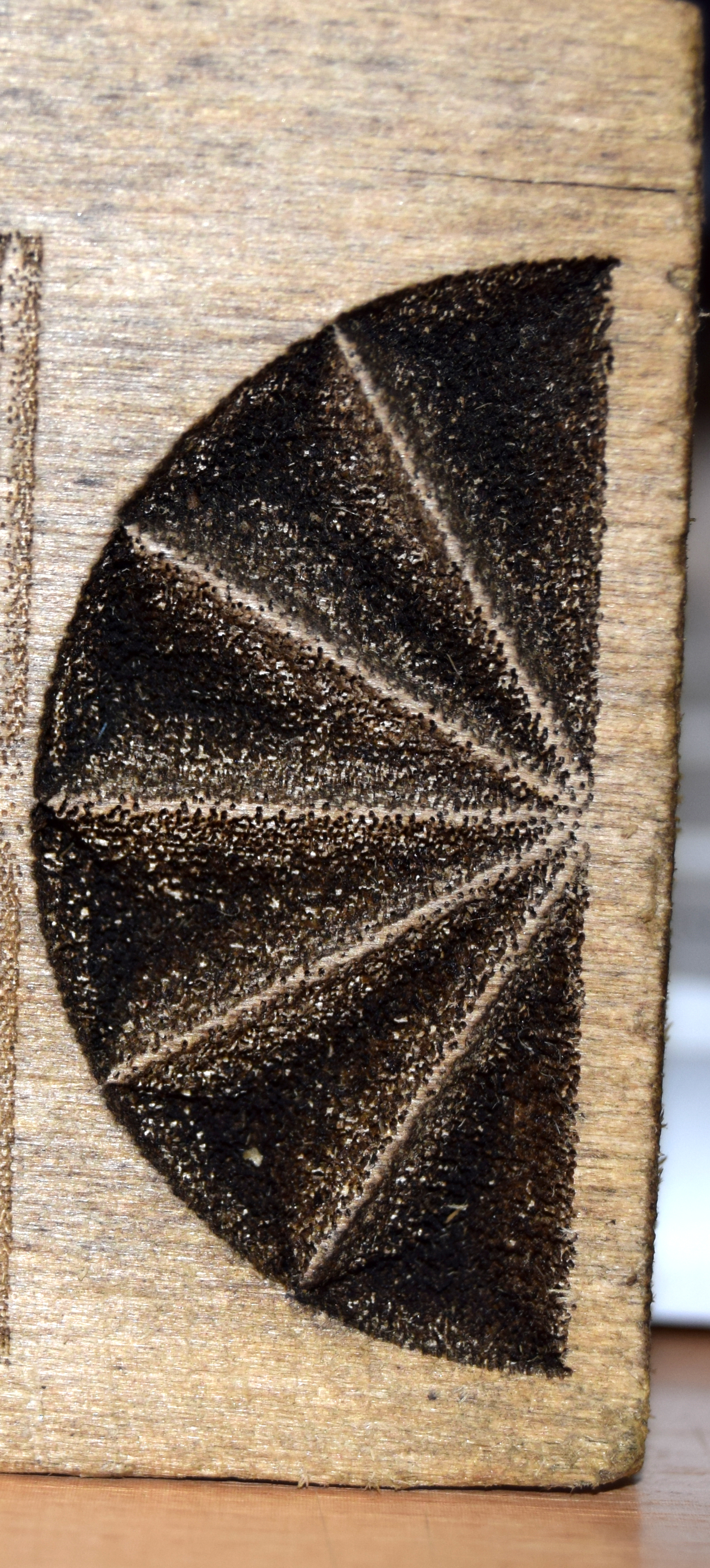 запускаю на станке с мощностью 90, скорость 20, размер 5 х 2,5 см, геометрическая резьба в лазерном исполнении: