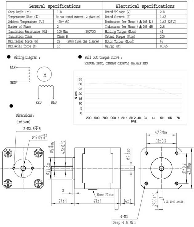 В том то и дело, что пропусков шагов нет... Во всяком случае, я не заметил, хотя и метки ставил и проверял точку выстрела.Terminator писал(а):выставляй скорость пониже, например 50, если пропуск остается, то проверяй фазировку, то есть чтобы обмотка А соединялась с контактами А+А-, ну или B-B+ при обратной фазировке.