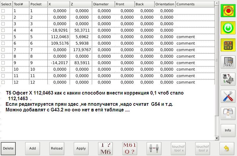 4. после перезагрузки емс в таблице инструментов остается tooloffset с введенной поправкой,а