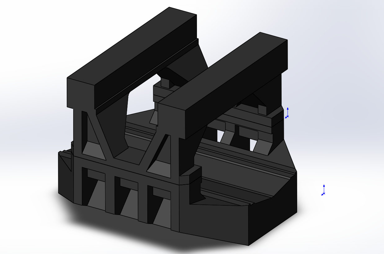 Максим мне такое с запасом, только под мои модели. У тебя стол большущий 600/400 и всего 2 рельса и 4 каретки, я планирую 2 рельса (межосевое 150) и 6 кареток , по три на ось с межкареточным 150 мм (прощу прощения за абизянье толкование ).Толщина 16- 20мм с ребрами и че он слабый будет? Когда пишешь не жесткий - пиши в цифрах тогда у меня будет с чем сравнить или тест в солиде замутить,т.е. пойму к чему стремиться.