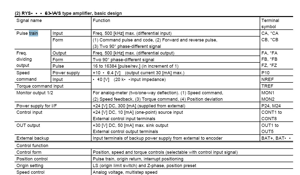 если в описании к сервоусилителю написано "Pulse train/speed control type" это значит что управляется по степдиру и по аналогу на выбор? Отлистал мануал до семы подачи управляющего сигнала - что-то не очень на степдир похоже. Усилитель Fuji Faldic RYS 401 S3-VVS