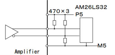 Насчет частоты не скажу, на схеме - включение дифференциальной линии, один сигнал передается по двум проводам. AM26LS32 - приемник, треугольником они передатчик нарисовали.