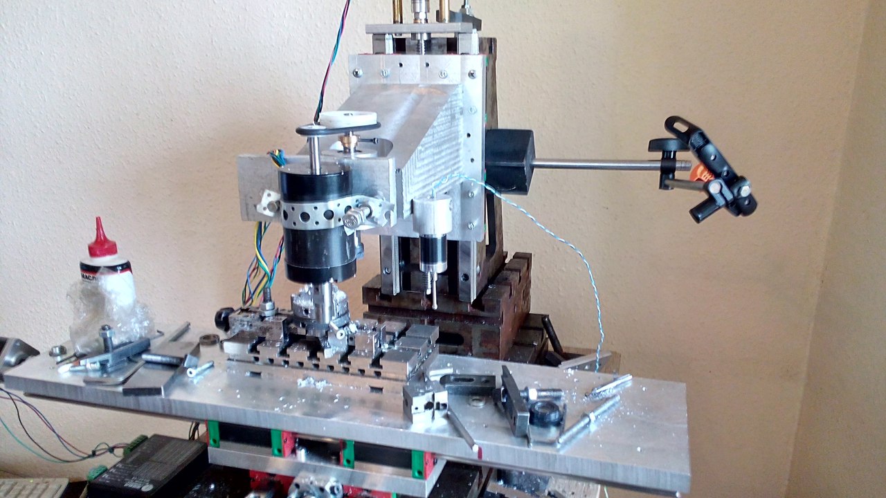 Был замучан китайский зверек вдоль и поперек, в итоге стало понятно что к слову "шпиндель" он имеет довольно отдаленное отношение, заместо него был выточен новый на базе ер11 удлинителя и пары радиально-упорных подшипников. Сейчас станочек чувствует себя пободрее и шум при фрезеровке ушел.