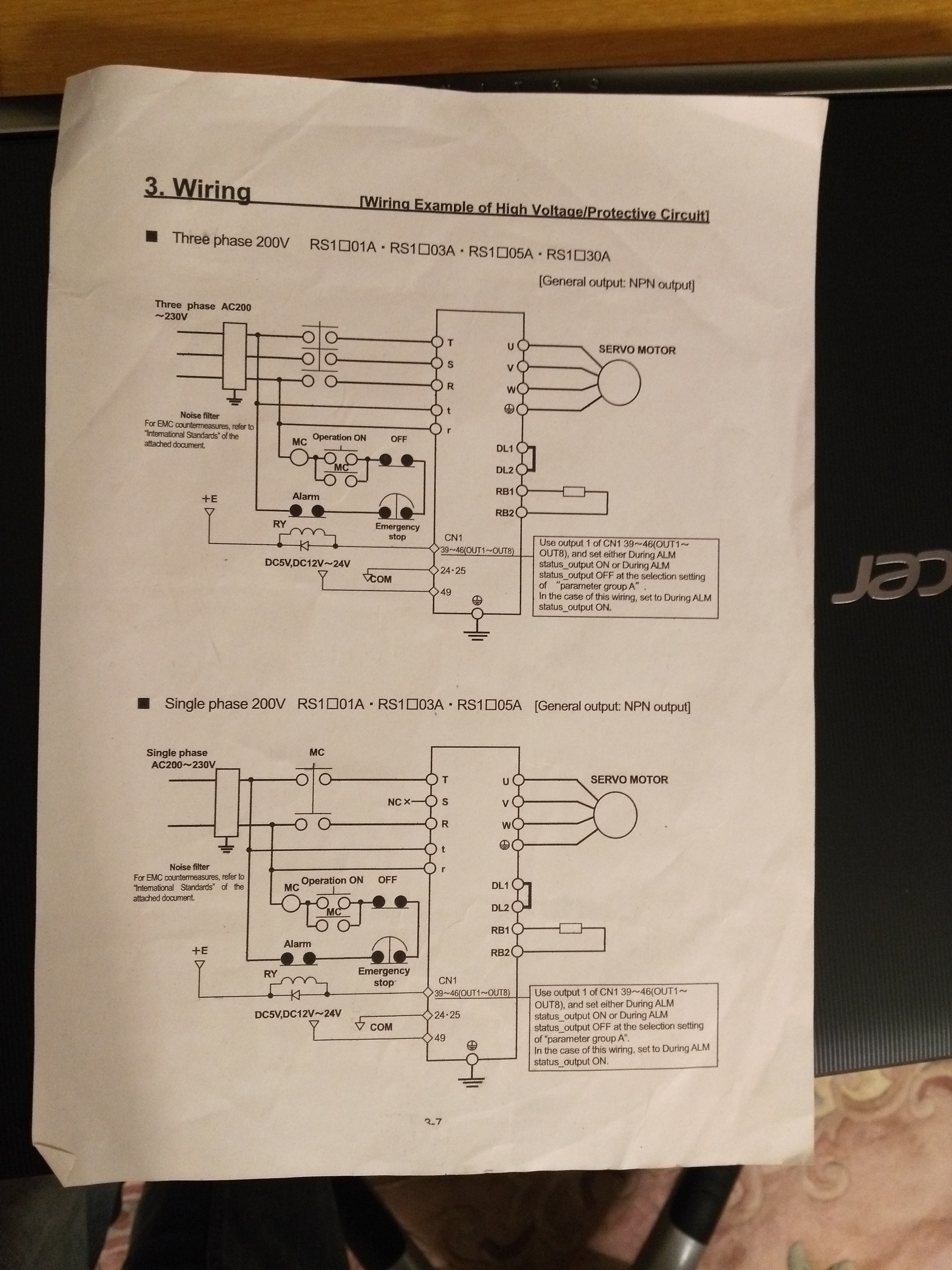 после EMI-фильтра выходят три набора проводов: 1-й идет на контактор включения асинхронного двигателя, 2-й на контактор включения приводов сервомоторов, а 3-й набор никуда не идет - болтается в воздухе.