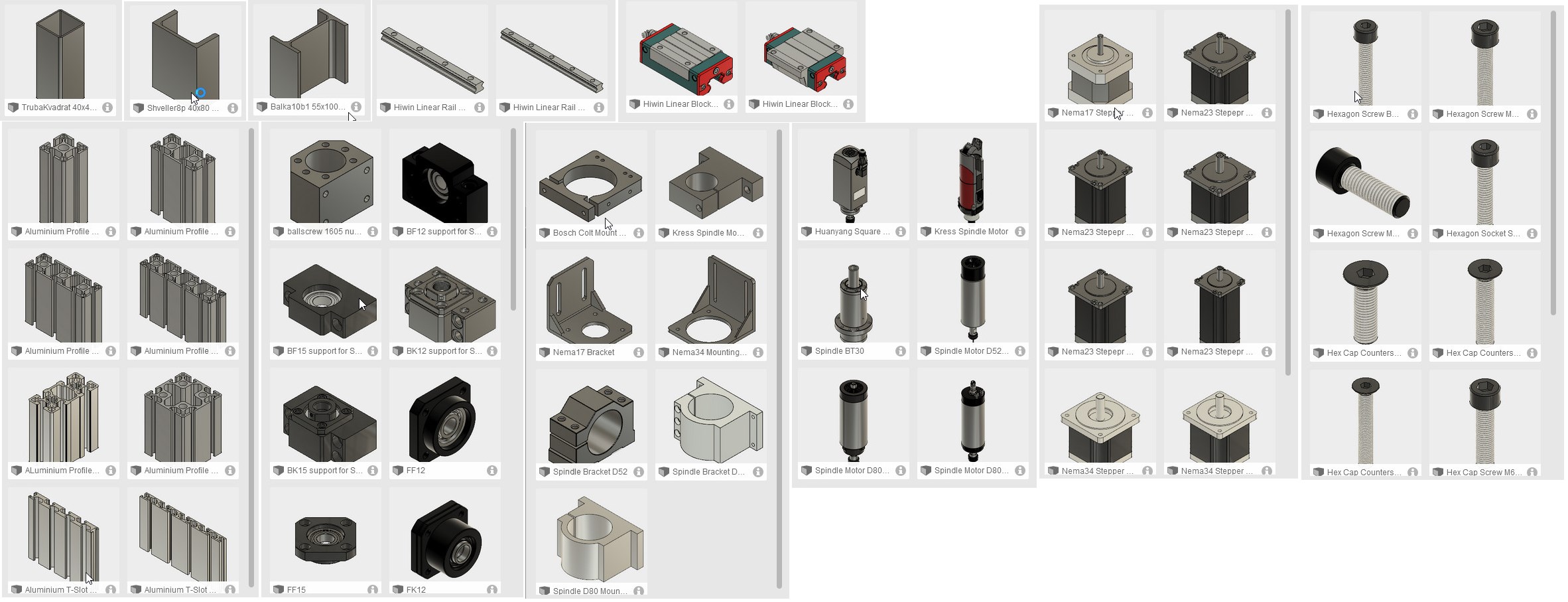 Предлагаю создать мини базу элементов для упрощенной сборки станков.