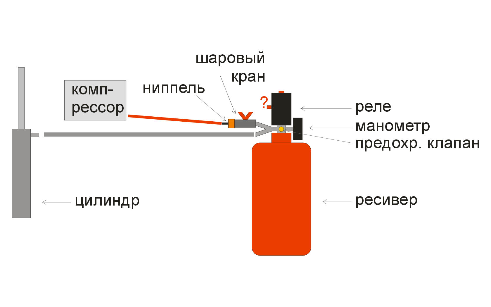 Цилиндры компрессора - тройник с трубкой в реле - обратный клапан - ресивер и прочая хрень.