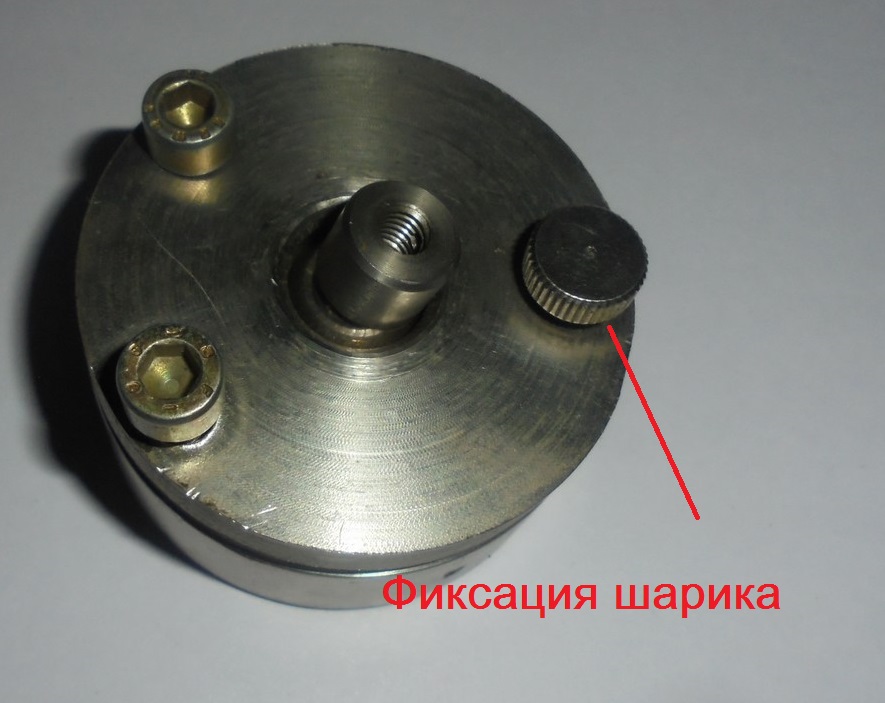 Болты слегка подтягиваются чтобы шарик свободно вращался, а когда найден центр один из болтов затягивается и шарик фиксируется.