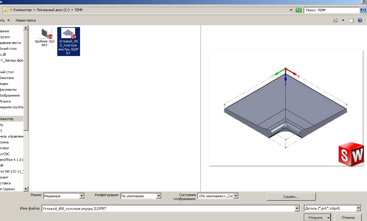 вот как должен выглядеть внутренний проект, при - Solidcam- открыть- SLDPRT