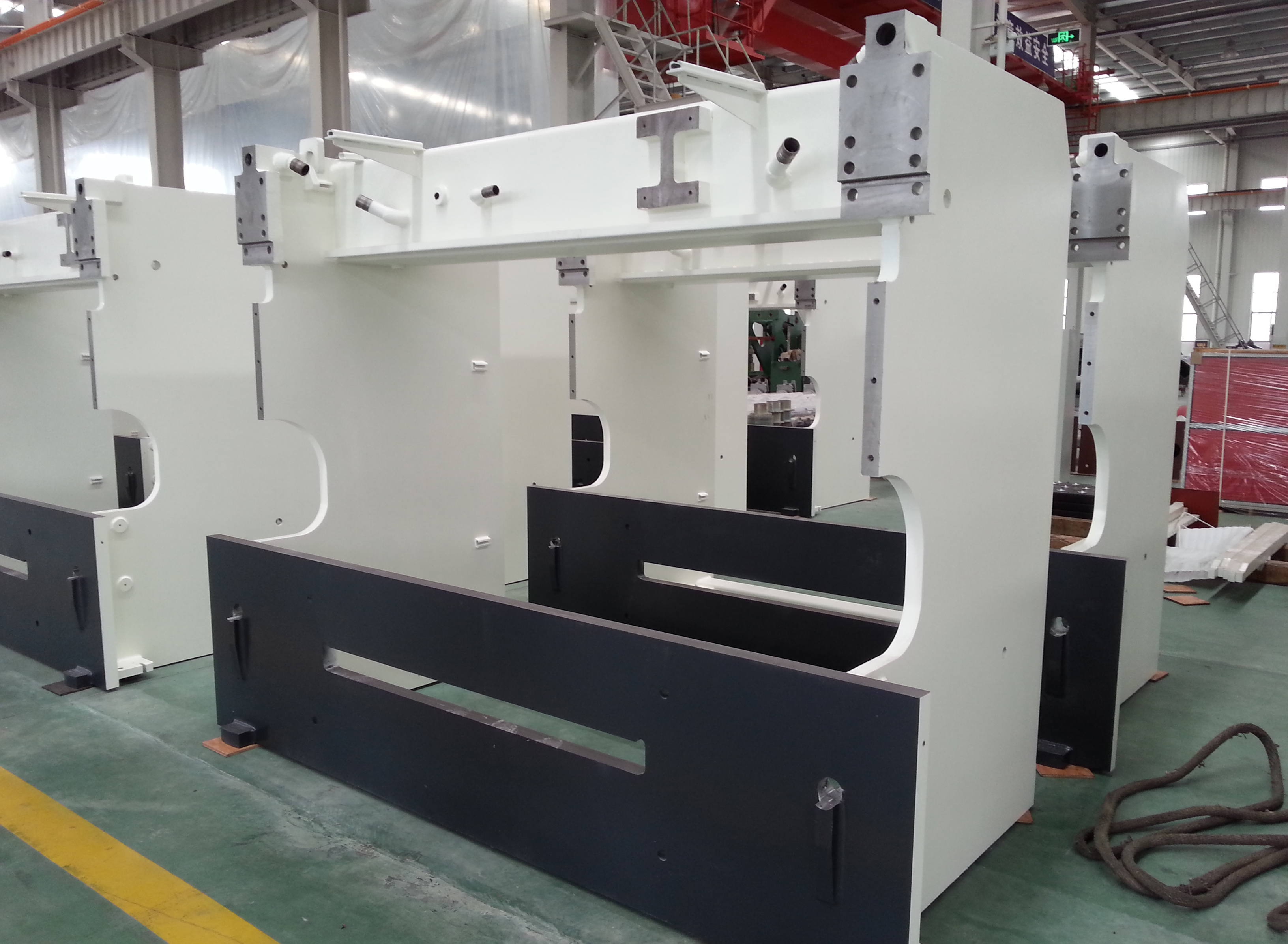 А вот на оставшихся фотках вызывают недоумение вырезы в станинах листогибов. Они очень некисло прослабляют конструкцию. У нас 3 листогиба турецких (1,2метра, 2мерта, 3метра) стоят. У них таких вырезов нет. И то, при гибке листа толщиной 4мм на всю длину, по центру не догибает. Правда там ещё система "бомбирования" стоит, компенсирующая деформацию станины.