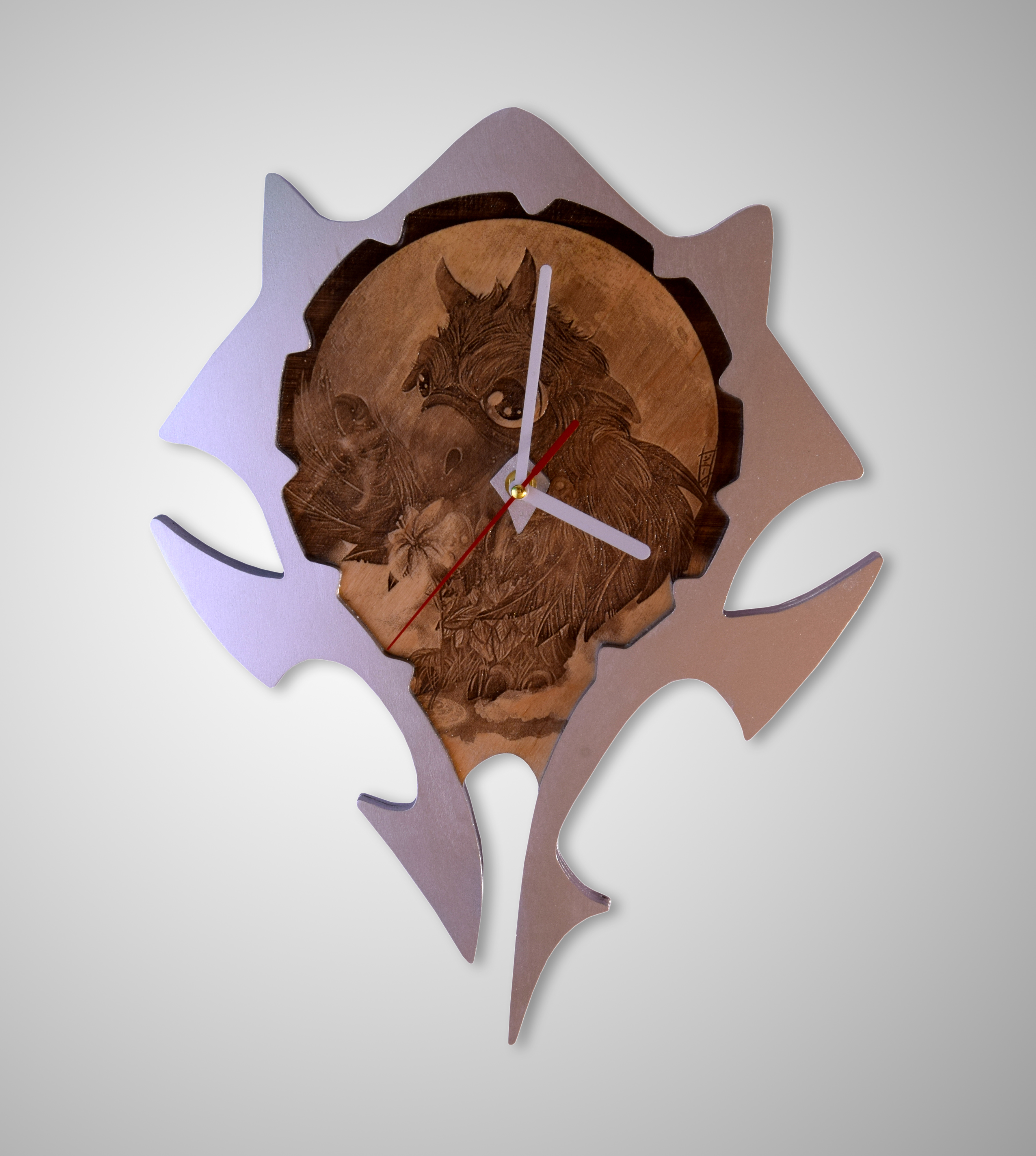 вот этот рельеф я гравировал примерно 1 час, здесь 10 слоёв и шаг гравировки 0,1 мм., потом ещё шлифовка, я его даже залакировал, смотрится нормально (показать правда не могу, увёз похвастаться и оставил):