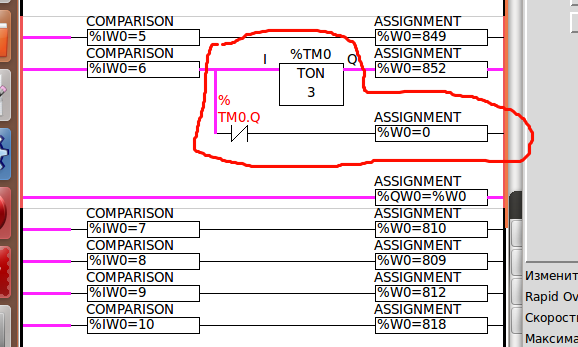 напиши - как это должно работать в железе ,а не программноВалерий писал(а):а надо когда код переключился например первая выключилась переменная %W0 обнулилась, включилась вторая пока идет задержка 0.5сек.переменная в нуле,а далее включается вторая