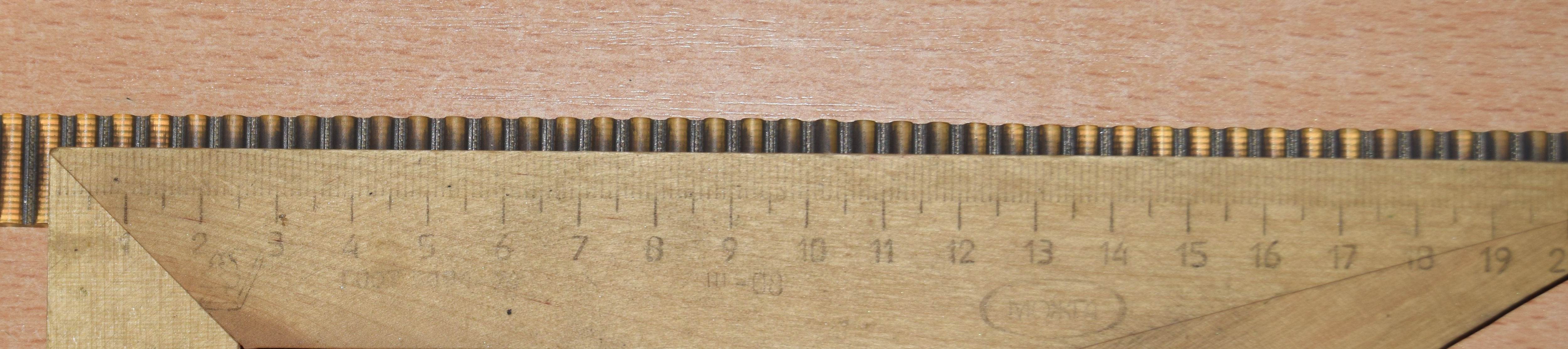 а вот сравнение с обрезком разомкнутого ремня со стальным кордом (у него точно шаг 5мм):