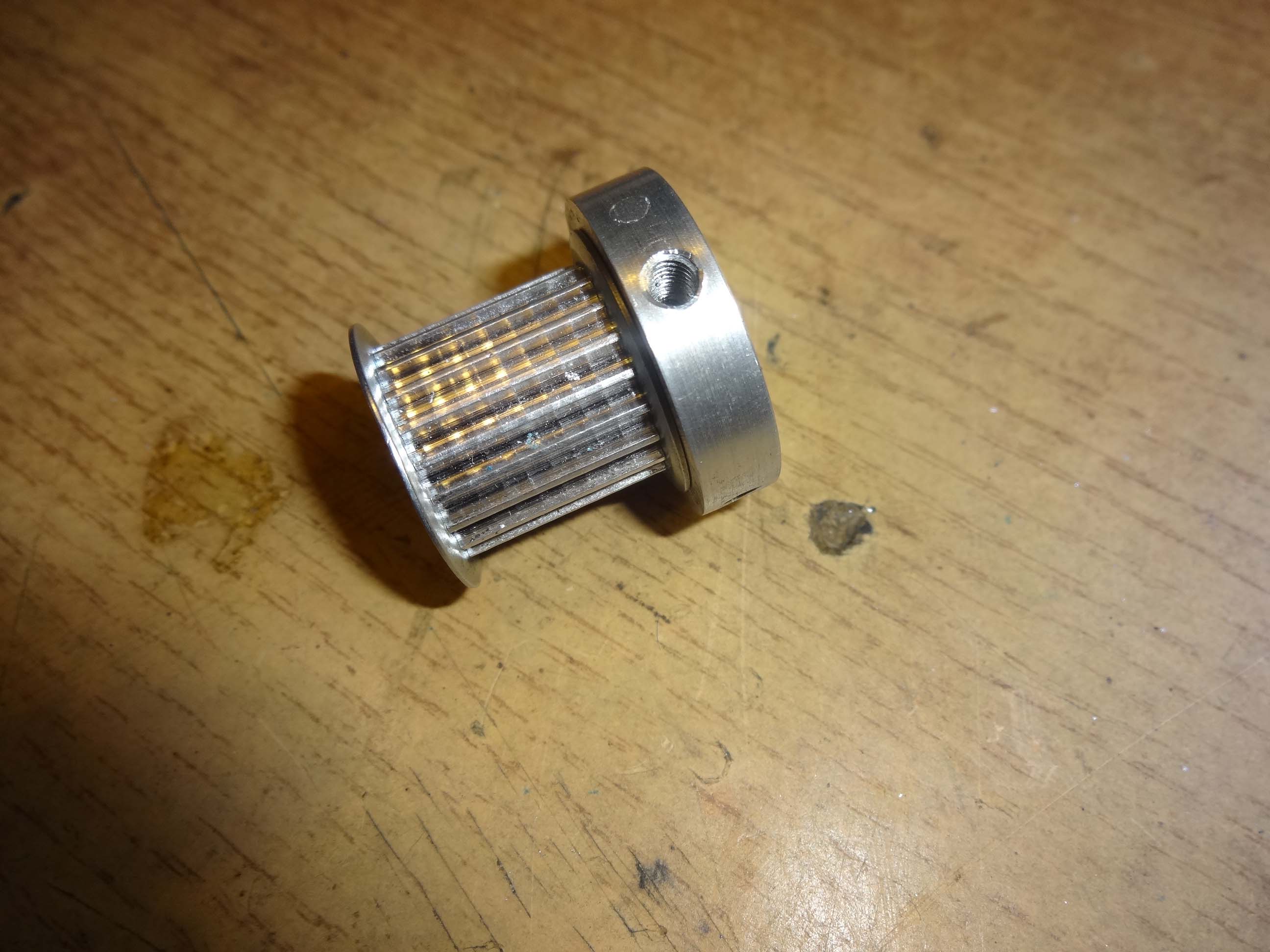 Долго и мутно все делалось - шкивы из Новосибирска, Заготовки корпусов в Украине делали, растачивали шкивы здесь в Воронеже, посадку под мотор делал сам. Все нужно было хорошо сделать чтобы соосность не потерять. Шпоночных пазов в шкивах не было, поэтому пришлось сажать на горячую - как следствие, очень строгий допуск на диаметр отверстия. Можно было, конечно, сделать паз в шкивах, но на оси Z (самой тяжелой) стоит мотор с тормозом у которого нет шпоночного паза, а значит и на 2 других смысла делать нет. Вовремя в соседней теме сказали что нельзя бить по валу мотора ибо стеклянный диск энкодера. Поначалу думал аккуратно постукивая шкив одеть. Зажать в центрах на станке и запрессовать тоже не вышло - энкодер на Сигма-1 не полый, упереться не во что. В итоге сделал такую вспомогательную конструкцию - может кому идея пригодится. Грел шкивы примерно до 300 градусов в сушильном шкафу. Стенка после расточки 6->8мм на шкивах стала тонкая, поэтому напрессовано колечко и в нем установочные винты. не думаю, что они играют роль в удержании шкива но хуже не будет это точно. да и в зоне контакта металла стало больше, а винты по крайней мере фиксируют кольцо.