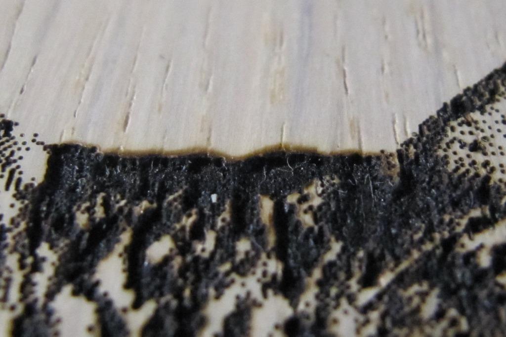 Результат зависит от применяемой мощности, скорости движения, и некого расстояния между выжигаемыми отрезками, которые могут повлиять друг на друга.
