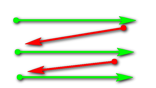 1) При гравировке, траектория движения, теперь зигзагом (зеленый -выжигание, красный - холостой ход).
