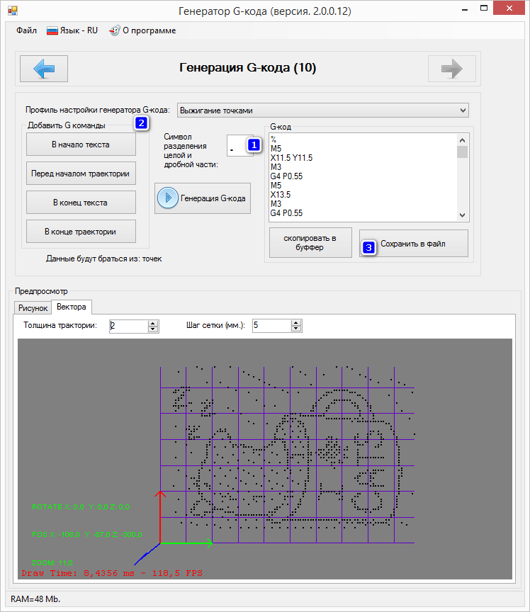 Исправьте пожалуйста: программа от 07.10.2016 генерит неправильный код! Y копирует X! Размер картинки должен быть 192х120мм