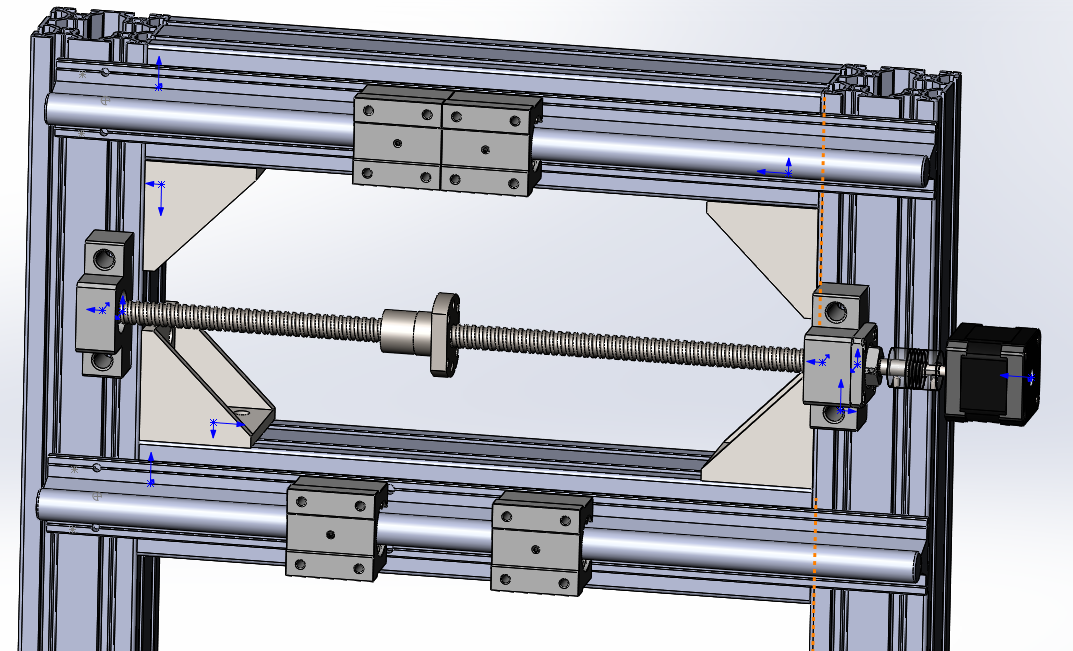 На оси Y решил сделать маленький криминал (сдвинул верхние каретки), дабы не делать закладные в панели оси Z: