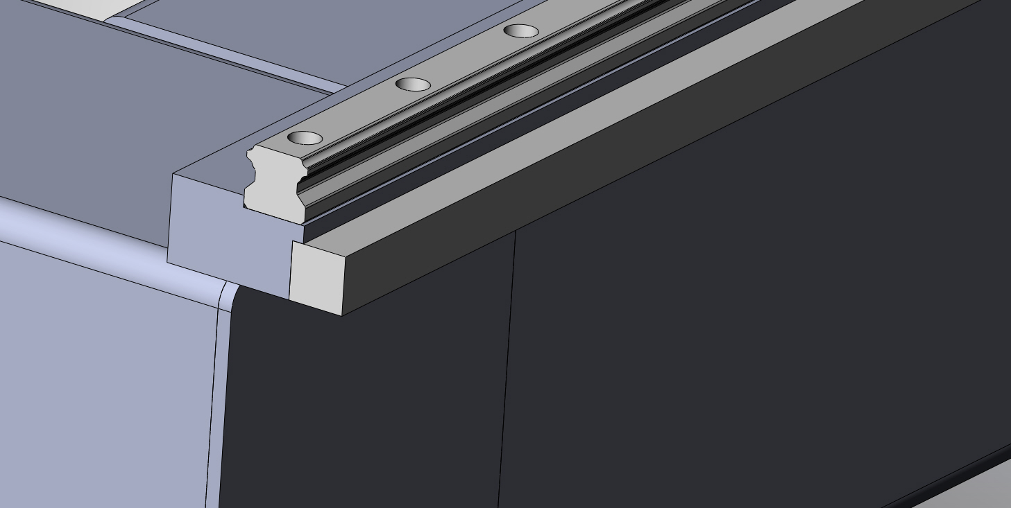 По мне проект получается таков, рама вроде прочная, базу под направляйки и рейки фрезернем, боковины портала отольем из алюминия или чугуна (они пока нормально не нарисованы). Портал пока та же балка 200 на 160 стенка 6, тоже после фрезеруется, но портал мне не нравится, скорее сварим из пластин с усилителями например из 10ки либо есть возможность лить и фрезить. Бошку пока не рисовал. В бошке планируется установка дисковой пилы для черновой обдирки бревна.