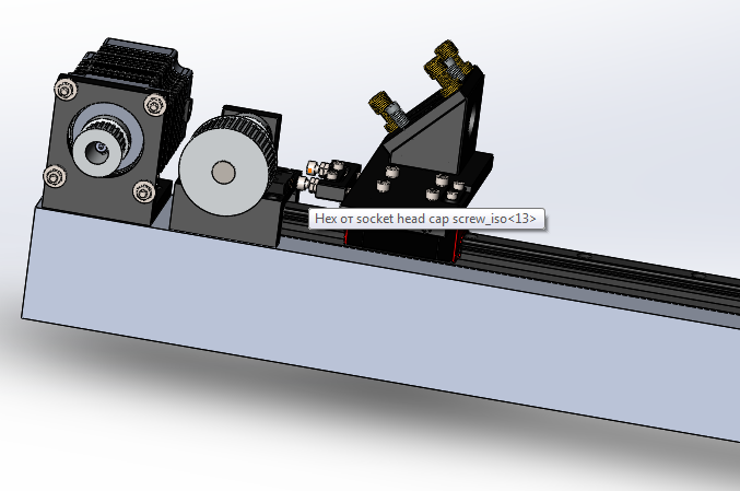 Сейчас попробовал предложенную вами схему. Сразу же уткнулся в оптику. Если взять рельсу MGH15, то расстояние от портала до нижней части держателя головы составляет 28мм. Ок, выставляем, равняем. Далее пытаемся разместить зеркало, что на портале. И оказывается, что оно не достаёт до портала даже в полностью раздвинутом состоянии миллиметров 5. А если мы хотим получить возможность регулировки, то не достаёт всех 10 мм. Так что для этого зеркала всё равно прийдётся делать дополнительную проставку... Конечно, крепление головы и коретки совпадает идеально... Буду думать дальше :)