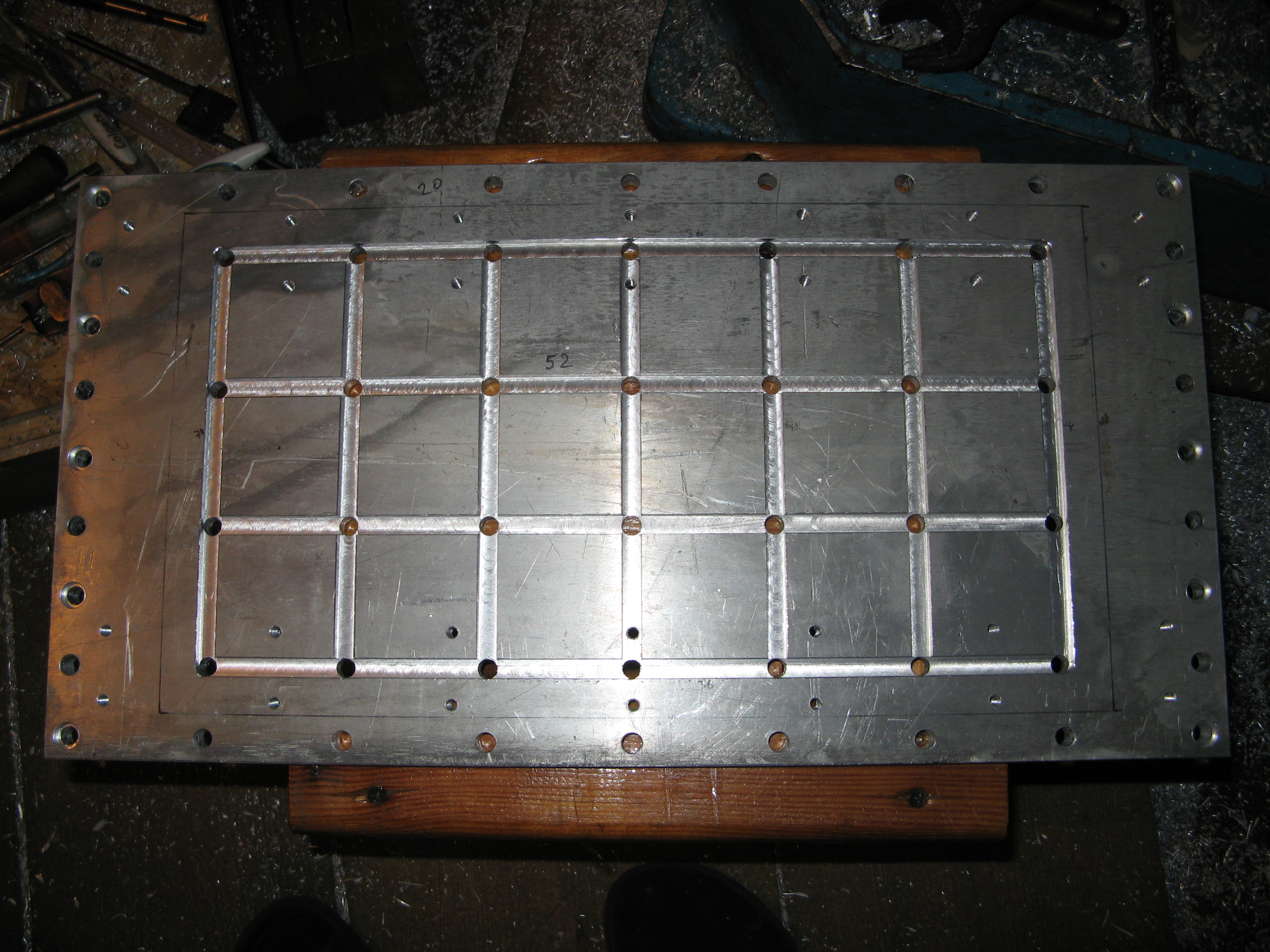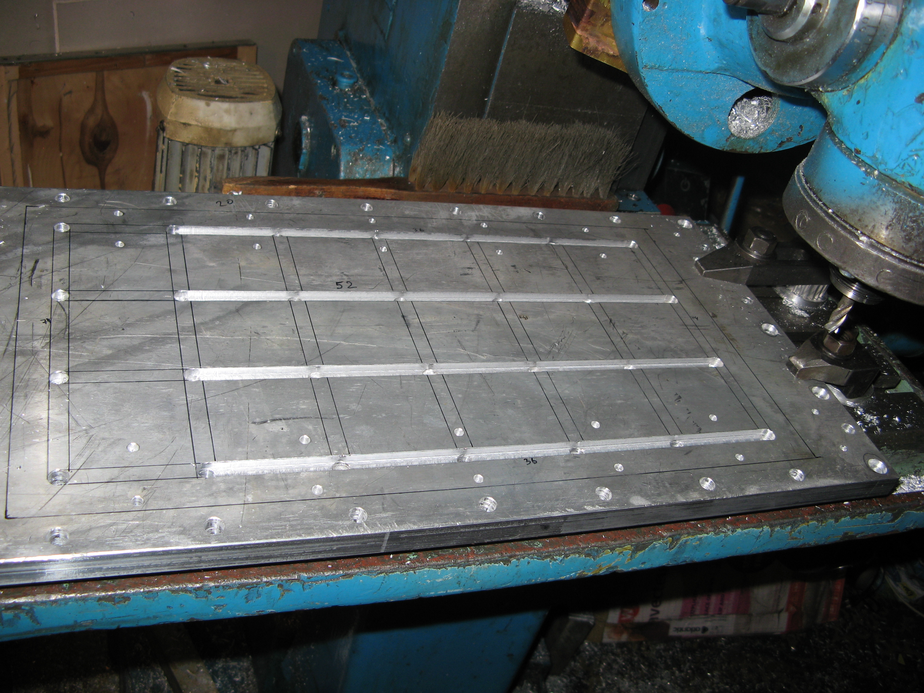 вот понемногу пилю стол. посверлил самодельным ступенчатым сверлом отверстия под резьбовые втулки, под валы на опоре, пофрезеровал пазы. ну и фотоотчет по привычке