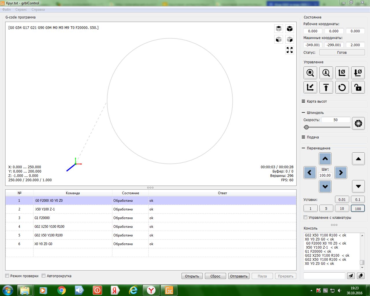 Но для нормальной работы с управлением по PWM придется еще перейти на версию GRBL 1.1d ну или какая там дальше будет. На версии 0.9 команда S тормозит движение, а еще до кучи вызывает спонтанно ошибку ID:25 от контроллера. Это относится по крайней мере к моему сендеру и к сендеру Дениса Хайрулина , к новой версии 1.0 с поддержкой лазера тоже. Американский платный сендер вроде как этой проблемой не страдает, GRBL панель пока не знаю нужно залезть в исходники и посмотреть выводит ли она ошибки...