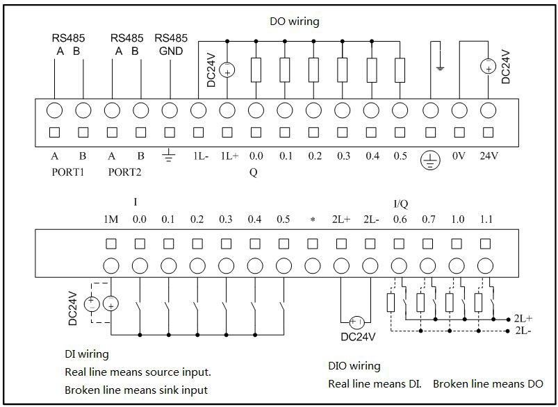 Количество входов/выходов: 8DI*24VDC / 6DO*24VDC(транзисторные).8 цифровых входов (из них два входа универсальные, вход/импульсный вход), 6 транзисторных выходов (из них два выхода универсальные, выход/импульсный выход).