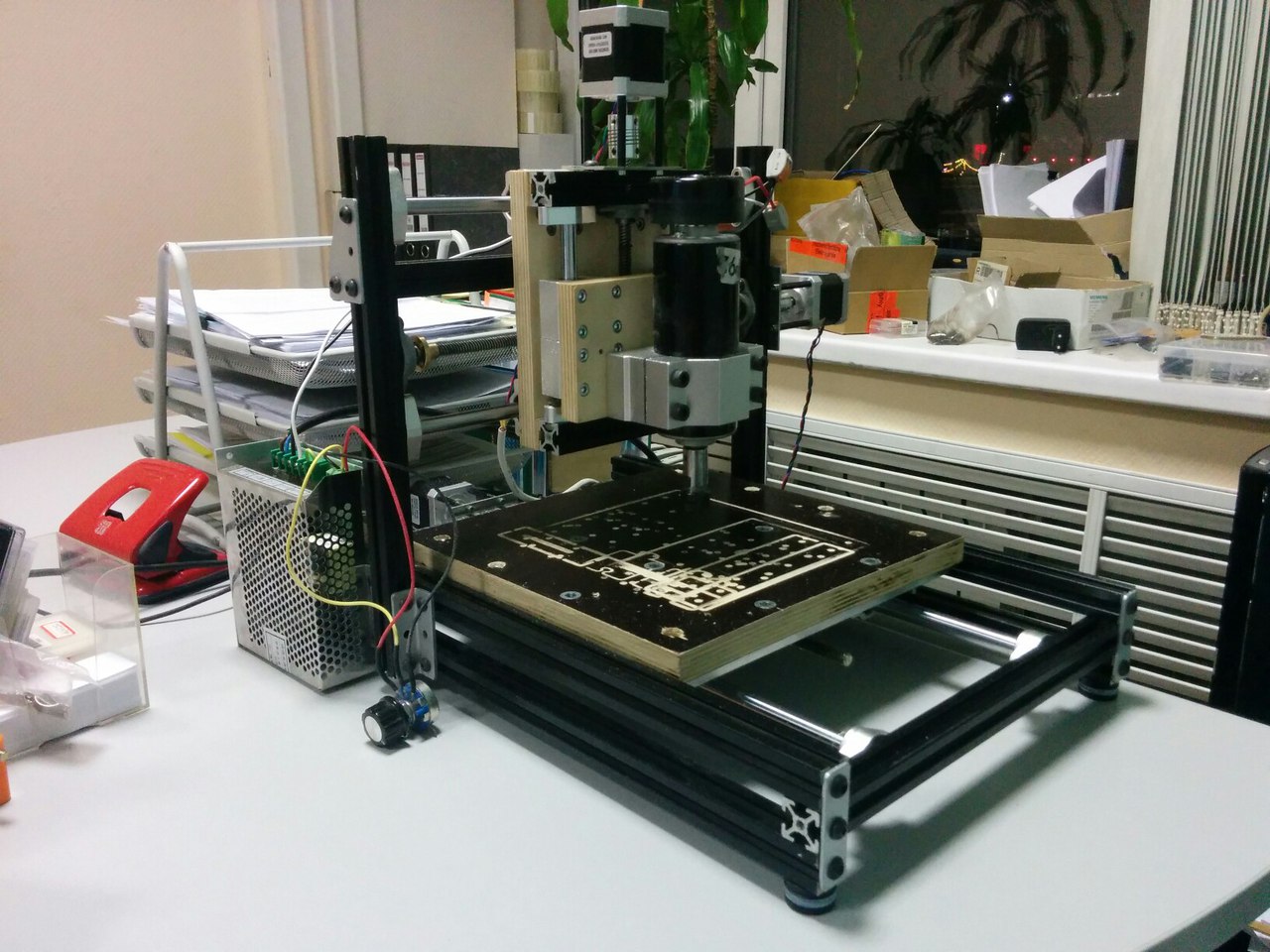 Вполне неплохой настольный станок получился, даже с точки зрения технической эстетики. Тот случай, когда и фанера, и алюминий "все сошлось"! Мне кажется, при наличии шпинделя-"частотника" вполне будет драть и "цветнину".