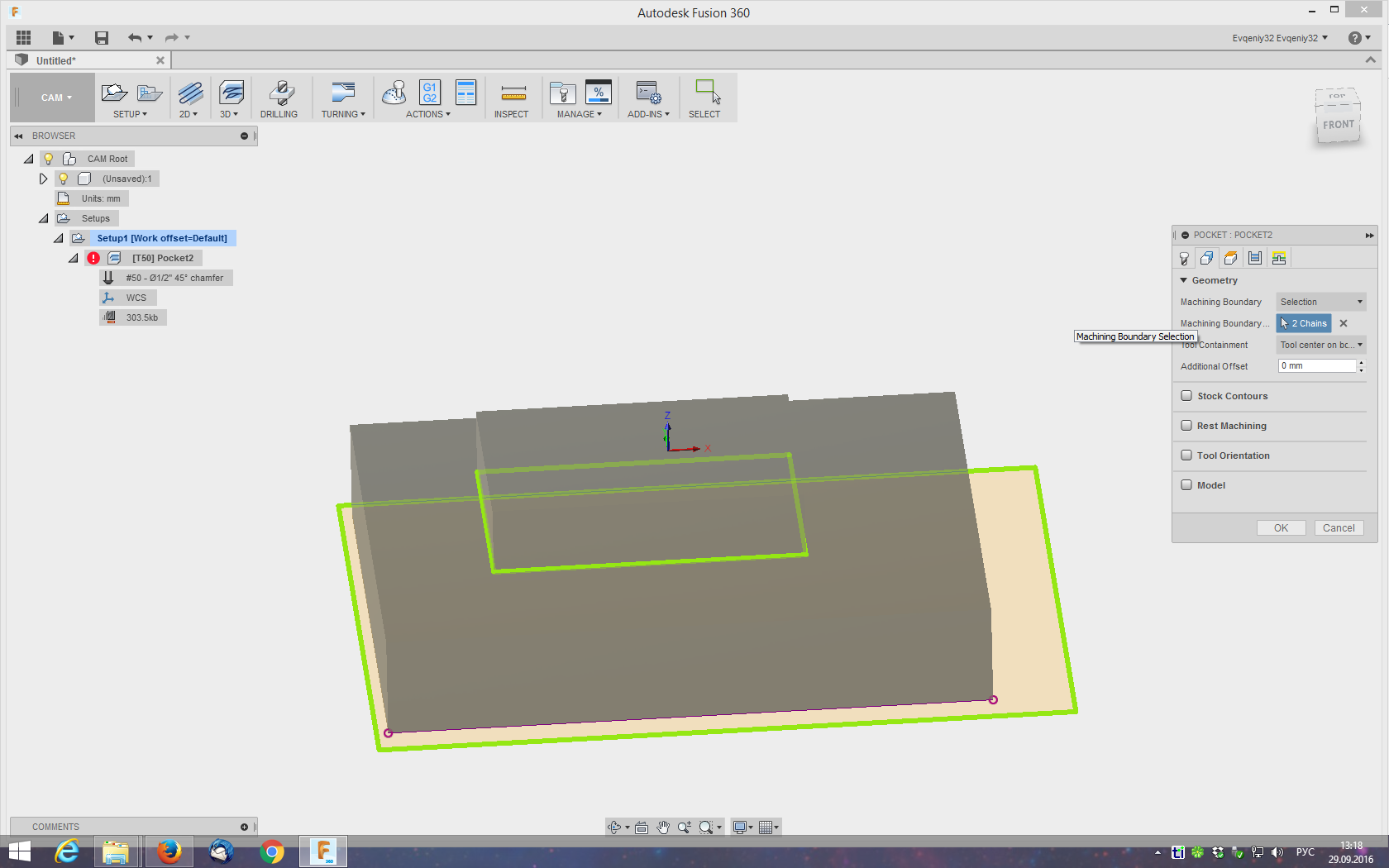 Taganrog писал(а):Я тоже так думал, только на втором скрине результат этого. Хоть указанно OUTSIDE но как видим он делает сначала снаружи и почему то не до низа,а потом лезет во внутрь и режет там.
